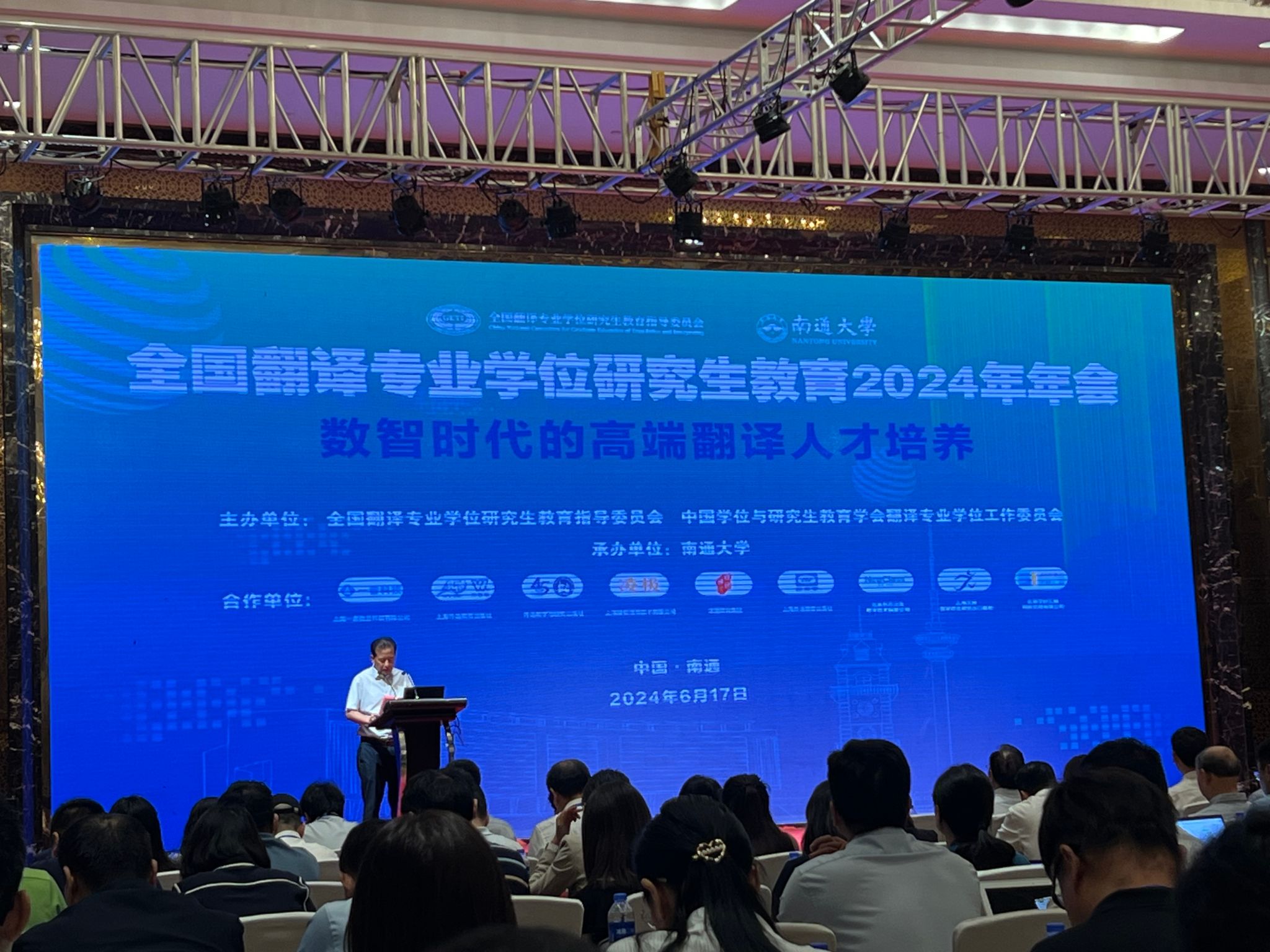 2024年6月16-17日,由全国翻译专业学位研究生教育指导委员会和中国学位与研究生教育学会翻译专业学位工作委员会主办,南通大学承办的全国翻译专业学位研究生教育2024年年会在江苏省南通市召开。本次会议主题为“数智时代的高端翻译人才培养”,教指委委员、专家委员和全国开设翻译专业的院校代表共计600余人参会,我院周琳院长参加了本次年会。