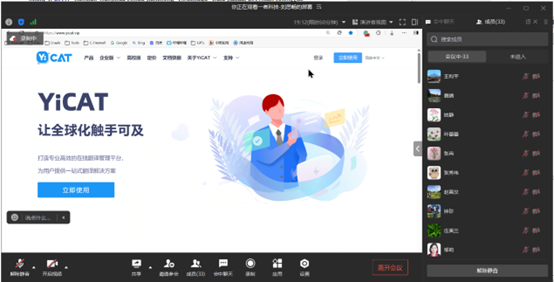 在培训中,刘思畅老师详细介绍了YiCAT平台的核心功能和独特优势,包括翻译项目管理、语言资产管理、班级成员管理、在线作业与考试等多个模块。他结合实际案例,通过操作演示,系统展示了如何高效利用YiCAT平台进行翻译教学管理、翻译项目团队协作以及术语库和记忆库的设置与管理。