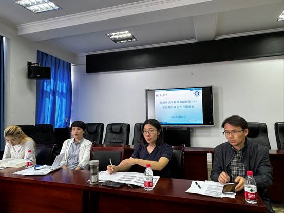 2024年3月29日上午,2138CC太阳集团邹莉副院长、英语系李洪波主任、法语系周渝主任前往管理科学与工程学院,与黄钟仪院长、陈久梅副院长、物流管理系龚英主任、工程管理系梁桂保主任、电子商务系文悦副主任就课程共建事宜进行了交流,双方就跨学科、跨院系的课程共建展开了深入讨论,旨在为学生提供更加丰富、多样的学习体验,促进学科之间的交叉融合。